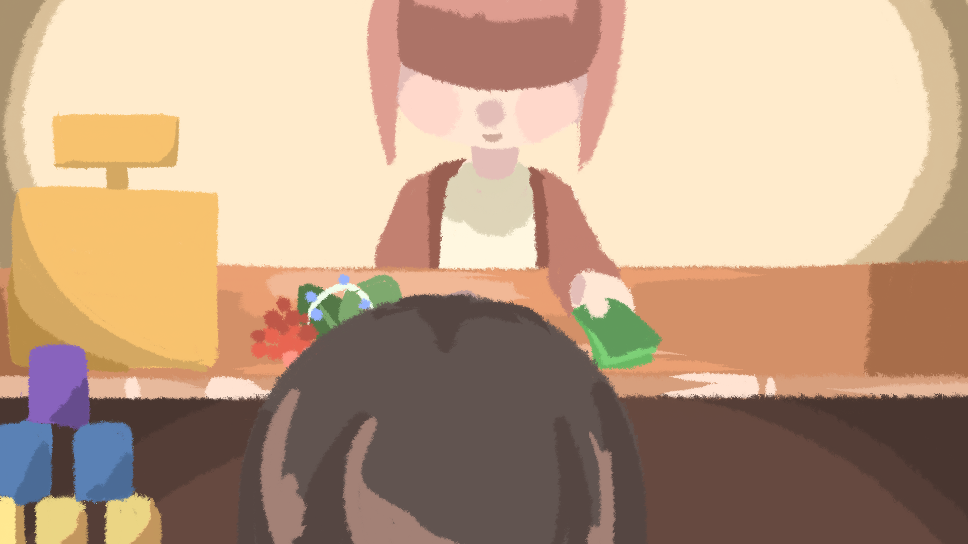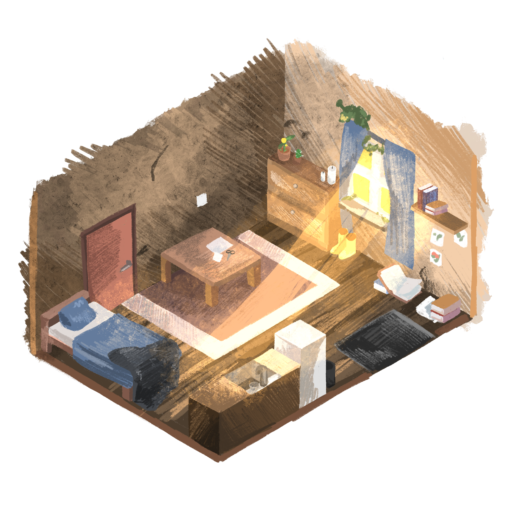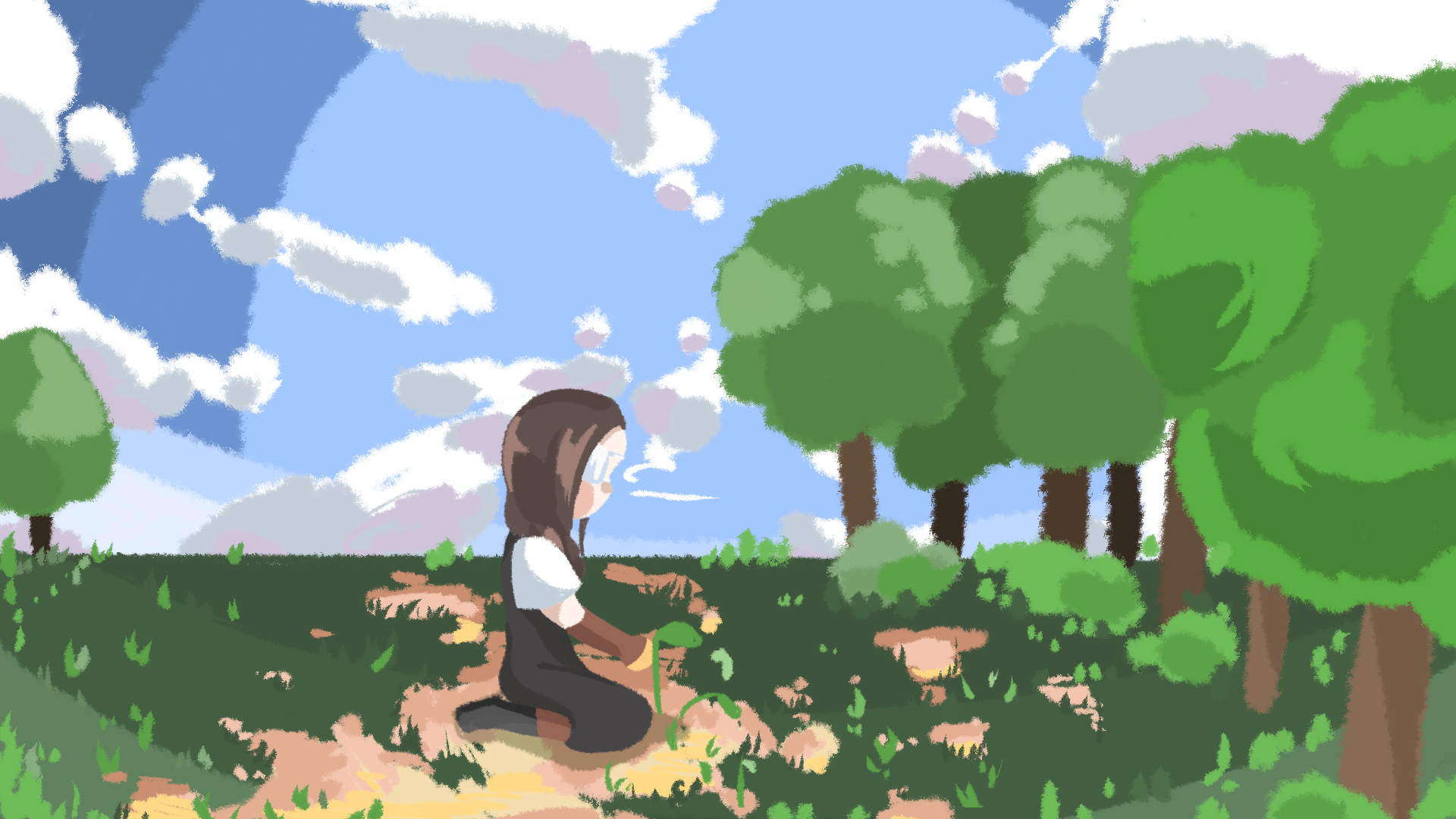 I created a new main character to fit with the darker theme of the story and gave them something to care about. The main character of this story is named Felt. She’s a forager that collects plants and herbs and sells them. The only friend she has is a magical doll named Stuffs. Stuffs is slowly losing the power to move and Felt goes on an adventure to save him.